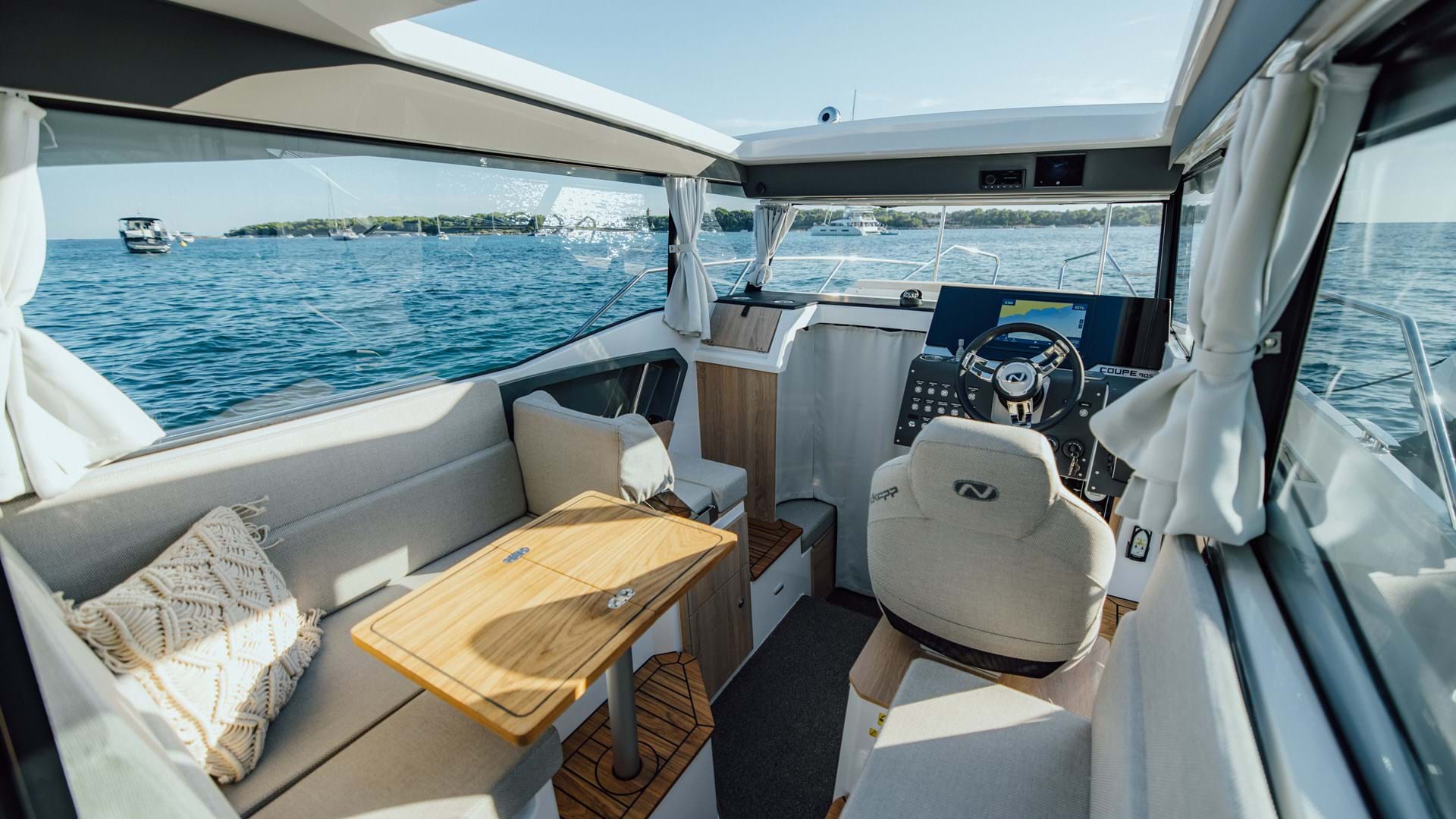 Elektrisk soltak gir deg følelsen av en åpen båt. Dette er en viktig detalj som øker komforten og den gode sommerfølelsen når du drar ut på en varm sommerdag. Det gjør også at cockpiten kan brukes mer aktivt, selv på sommerdagene.