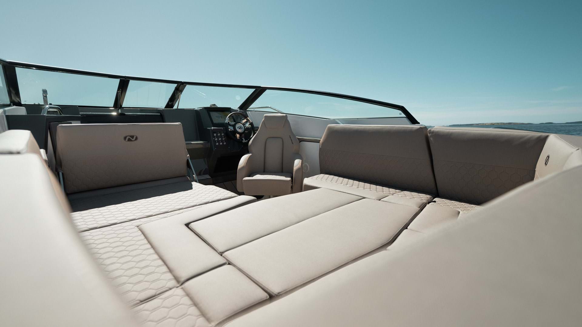 Cockpiten er stedet du tilbringer mest tid – og begge båtene byr på gode opplevelser med skjermede løsninger og gjennomtenkte detaljer. Her er det plass til sosialt samvær, syv personer om bord og den gode Nordkapp-følelsen.