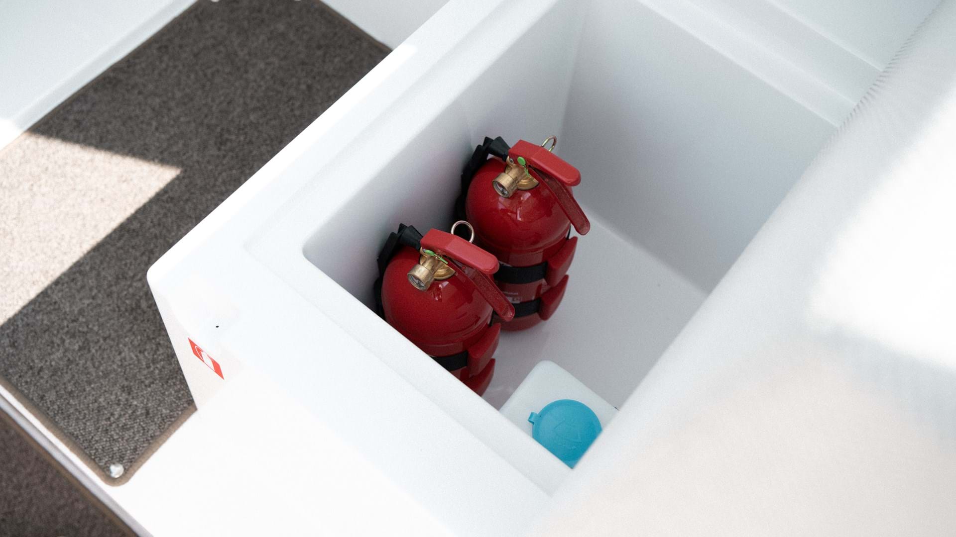 Brede gangbroer og solide håndtak sørger for trygg bevegelse i hele styrhuset, der hvert element gjenspeiler funksjonell luksus. Overalt er det integrert koppholdere i rustfritt stål, og dimbare lys gjør at du kan skape den perfekte stemningen. Nedenfor det bakre setet på babord side er det en kjøleskapsskuff som sørger for at du kan ta med fersk mat om bord, mens flere USB/USB-C-ladeporter er strategisk plassert på begge sider av båten for å ta hensyn til alle moderne nødvendigheter vi trenger.