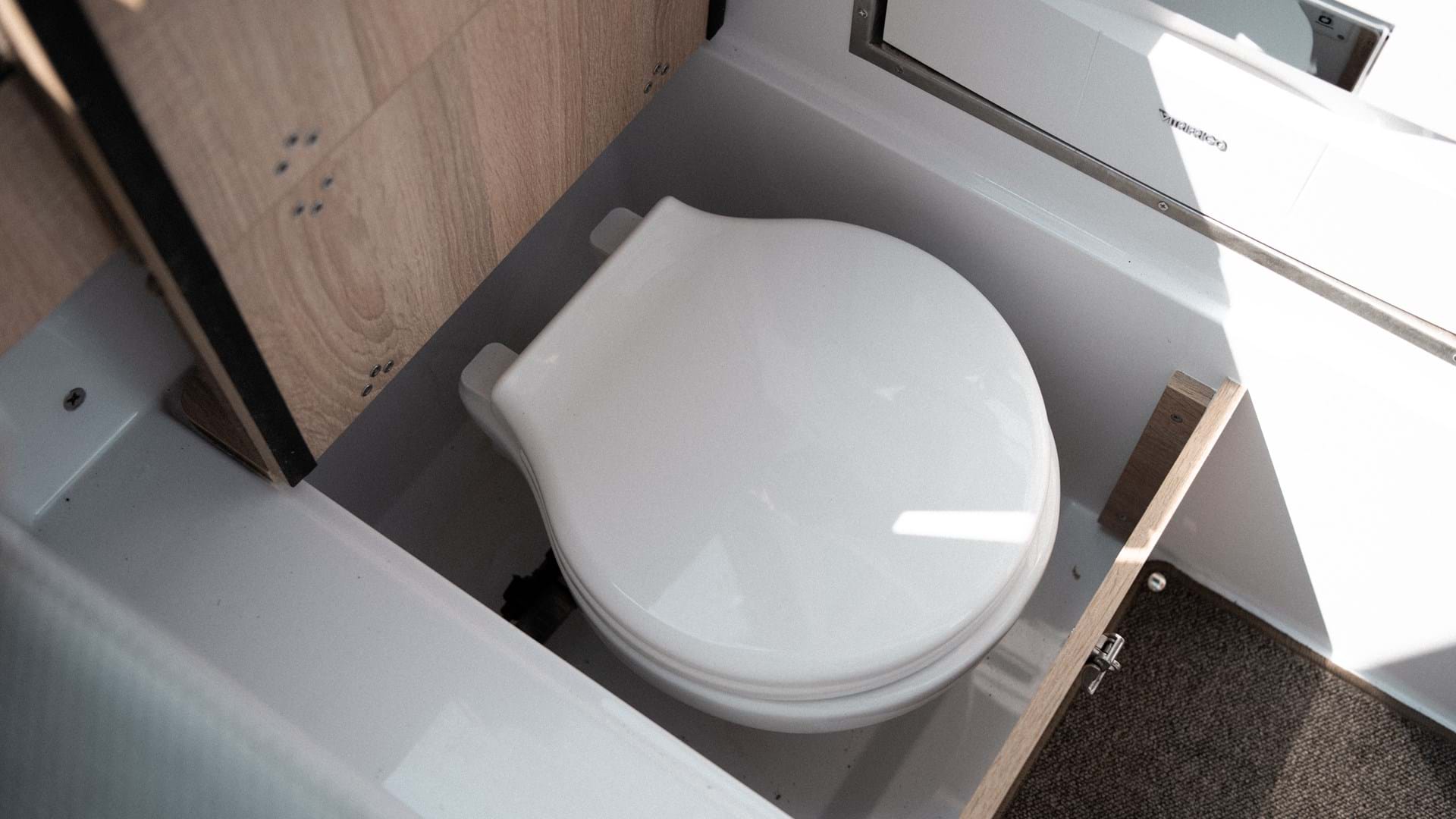 I akterenden er det gjennomtenkt plasserte luker i gulvet som gir enkel tilgang til viktige systemer og forenkler vedlikeholdsoppgaver. Drivstoffluken er på styrbord side, og avløpsluken er på babord side, noe som sikrer at alle driftsbehov blir dekket på en effektiv måte.