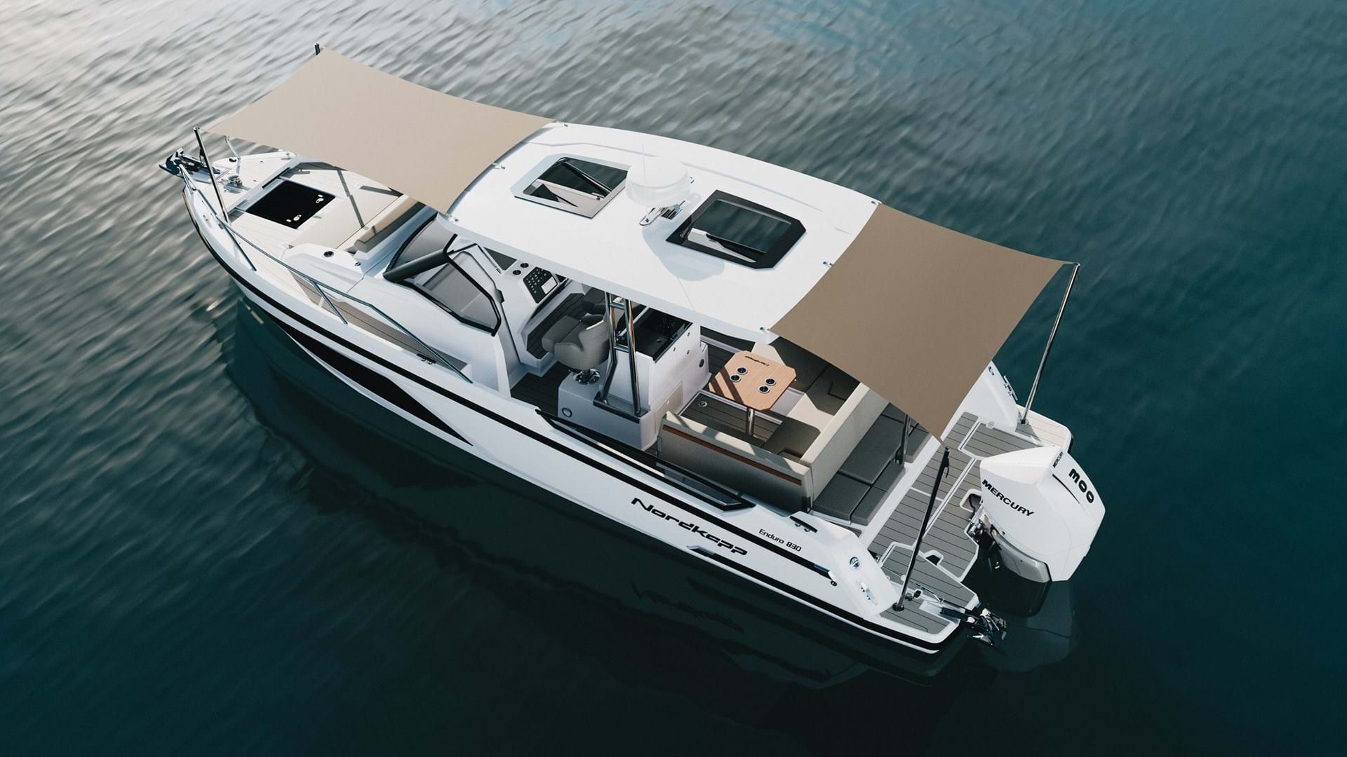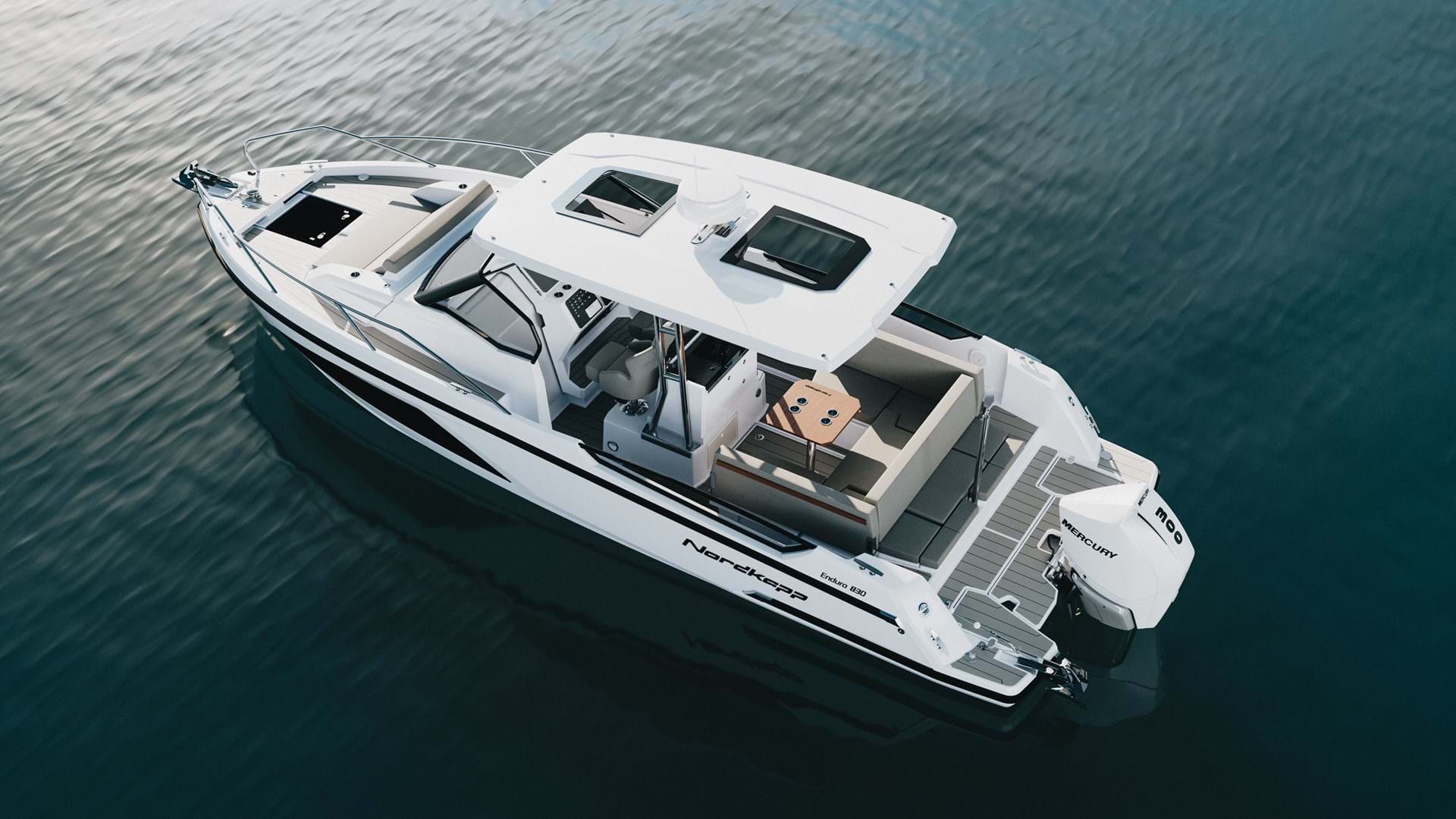 Med kalesjen oppe blir Enduro 830 en walkaround styrhusbåt.