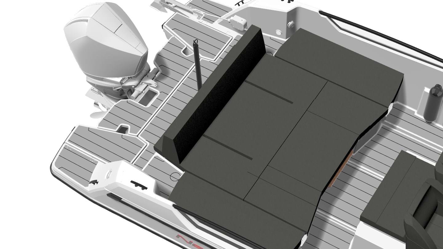 Vil du ha hele opplevelsen, skyver du ryggstøtten akterover og folder sideputene utover. Resultatet er en solseng som er over 2 meter dyp og 2,60 meter bred – romslige mål, spesielt på en 8-meters båt.