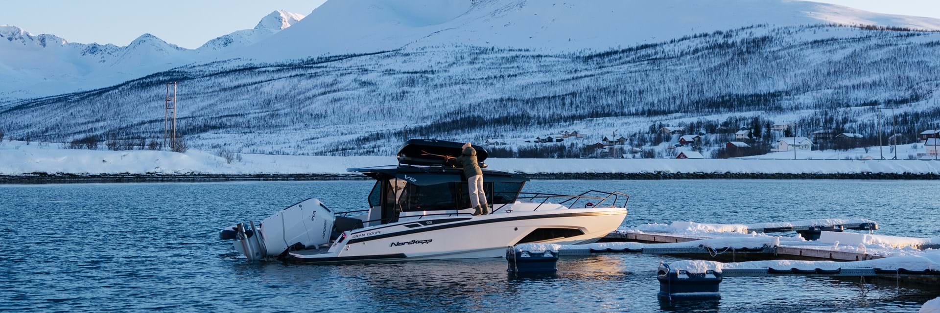 Ideen bak Sea to Summit var å gå på ski i Lyngsalpene med båt som eneste transportmiddel. Ideen til denne ambisiøse reisen stammer fra historier som medlemmer av Nordkappfamilien har delt med oss. Flere av dem bruker båtene sine gjennom hele året, og de kaster seg ut på eventyr som setter ferdigheter og fartøy på prøve. Vi har alltid vært stolte av å lage båter som ikke bare er sjødyktige, men som også trives når forholdene blir utfordrende. Coupe 905 V12, med sin førervennlige design og robuste egenskaper, var det ideelle valget for en slik ekspedisjon.