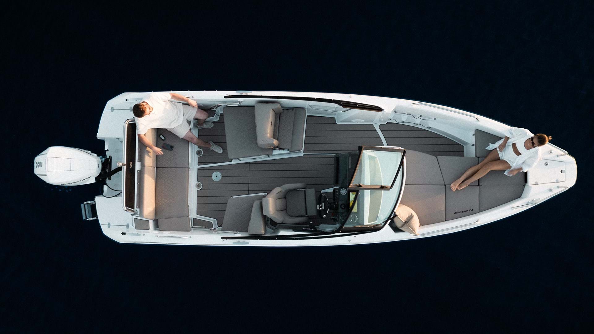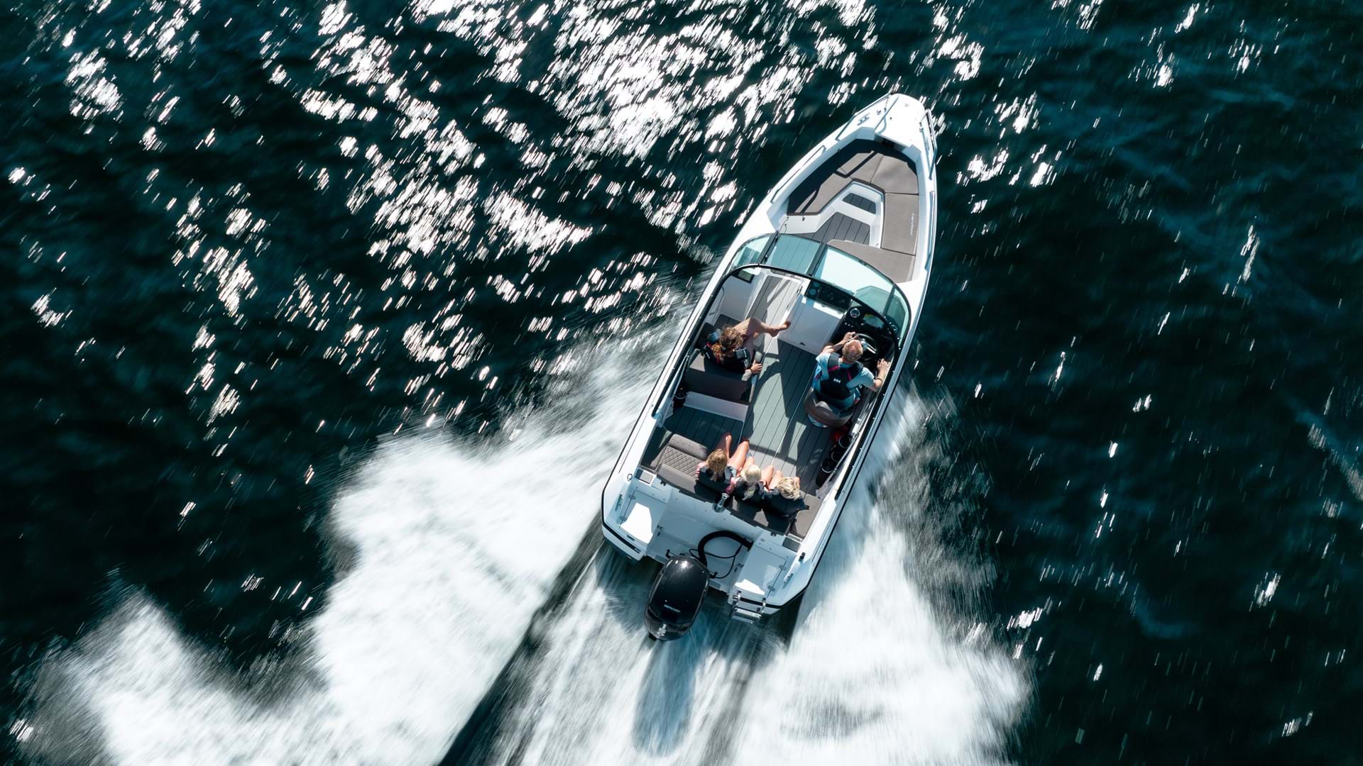 Båten har et dypt V-skrog som er det samme som på Enduro 605, som vant European Powerboat of the Year. Det gir deg en sporty bowrider som er enkel å kjøre. Du kan som sagt tilpasse ytelsen med Mercury-motorer fra 115 til 175 hk. Et spennende nytt motoralternativ for 2025 er Mercurys nye 150R-motor, en V6-motor utvikler at Mercury Racing.