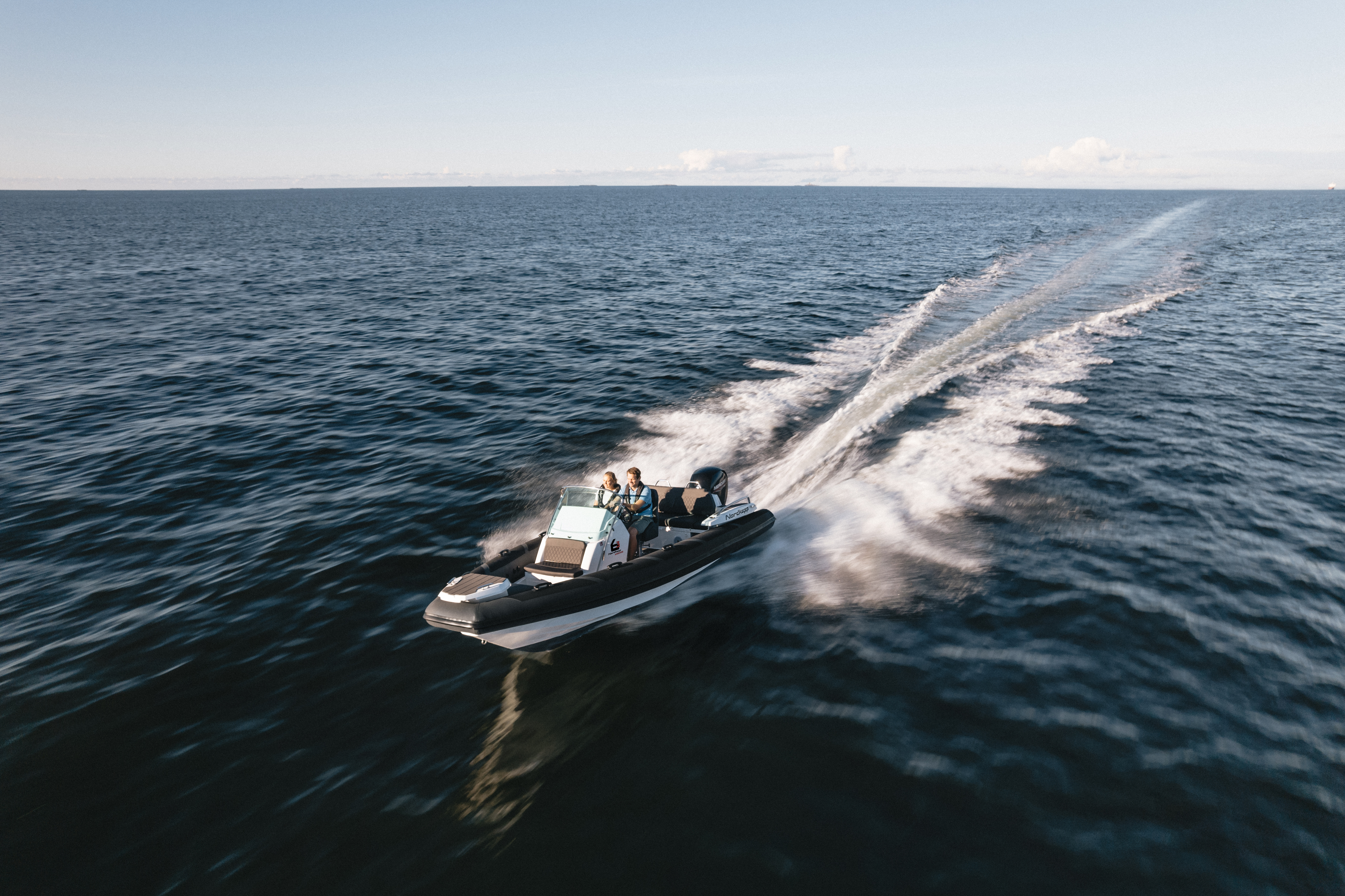 Airborne 6.3 kombinerer skrogopplevelsene fra skjærgårdsjeepen med den fra RIB-verdenen. Selv i krappe svinger presses du stødig ned i setet, ikke ut til siden. Det gir en følelse av kontroll og flyt – sporty, smidig og intuitiv.